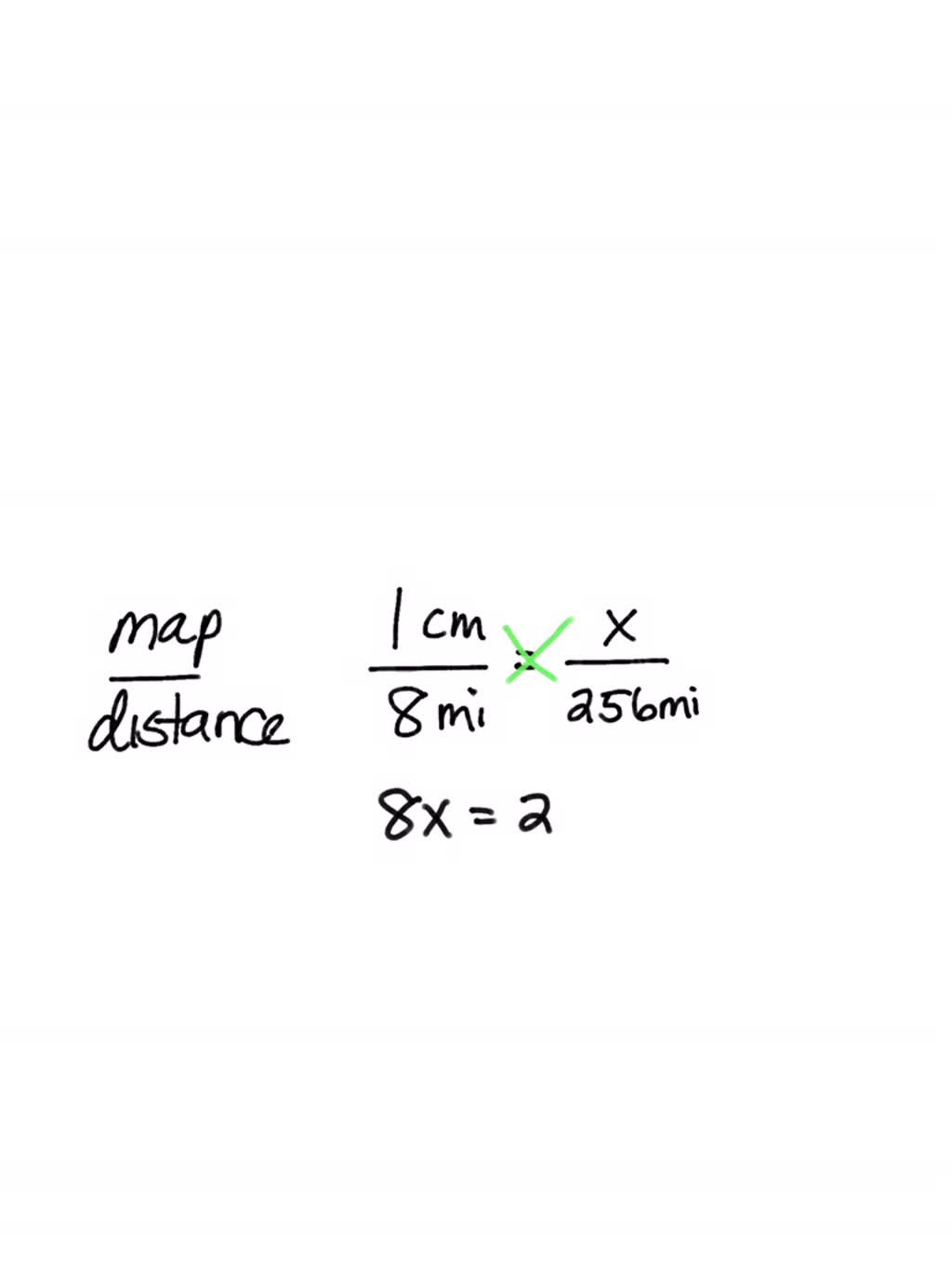 On a map, the scale is 1 cm = 8 miles. The actual distance between