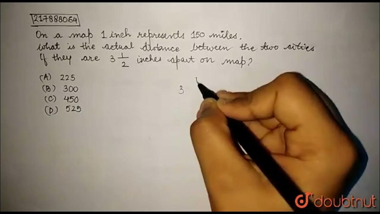 On a map, 1 inch represents 150 miles. What is the actual distance